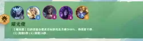 耀光师技能会使目标的攻击力减少50%持续若干秒。